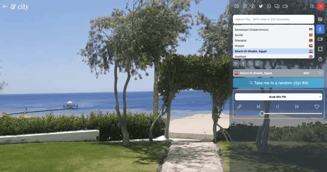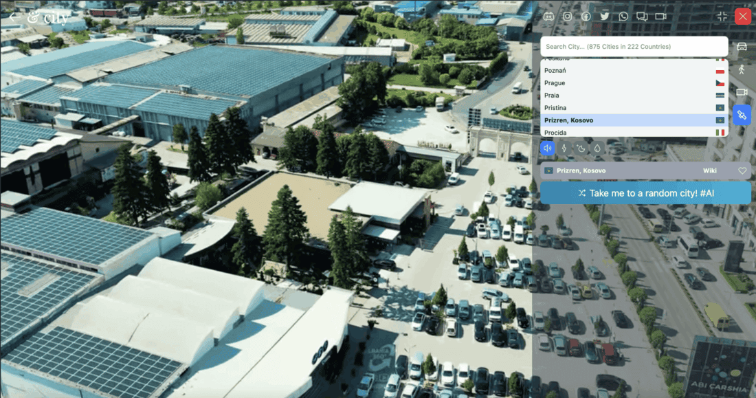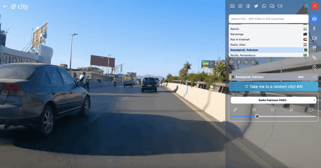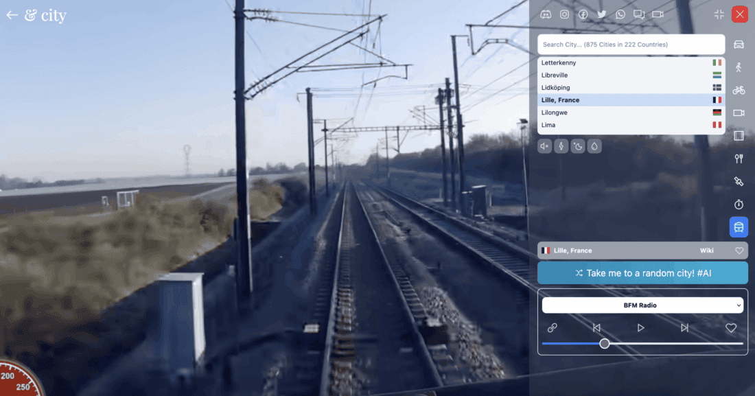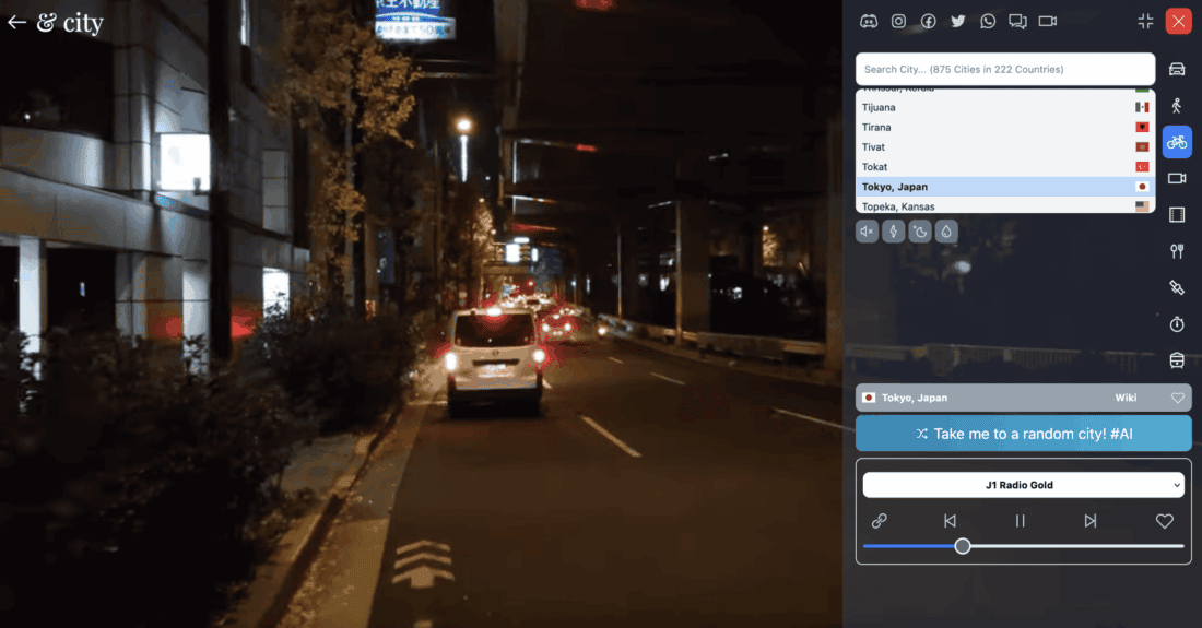 The first mode gave the website its name. You “drive” through a city of your choice by car. Unfortunately, you can’t actually steer the car. These are pre-recorded videos that are simply played back. It’s also not possible to select a specific spot in the city. Each time, it just starts from some random point.