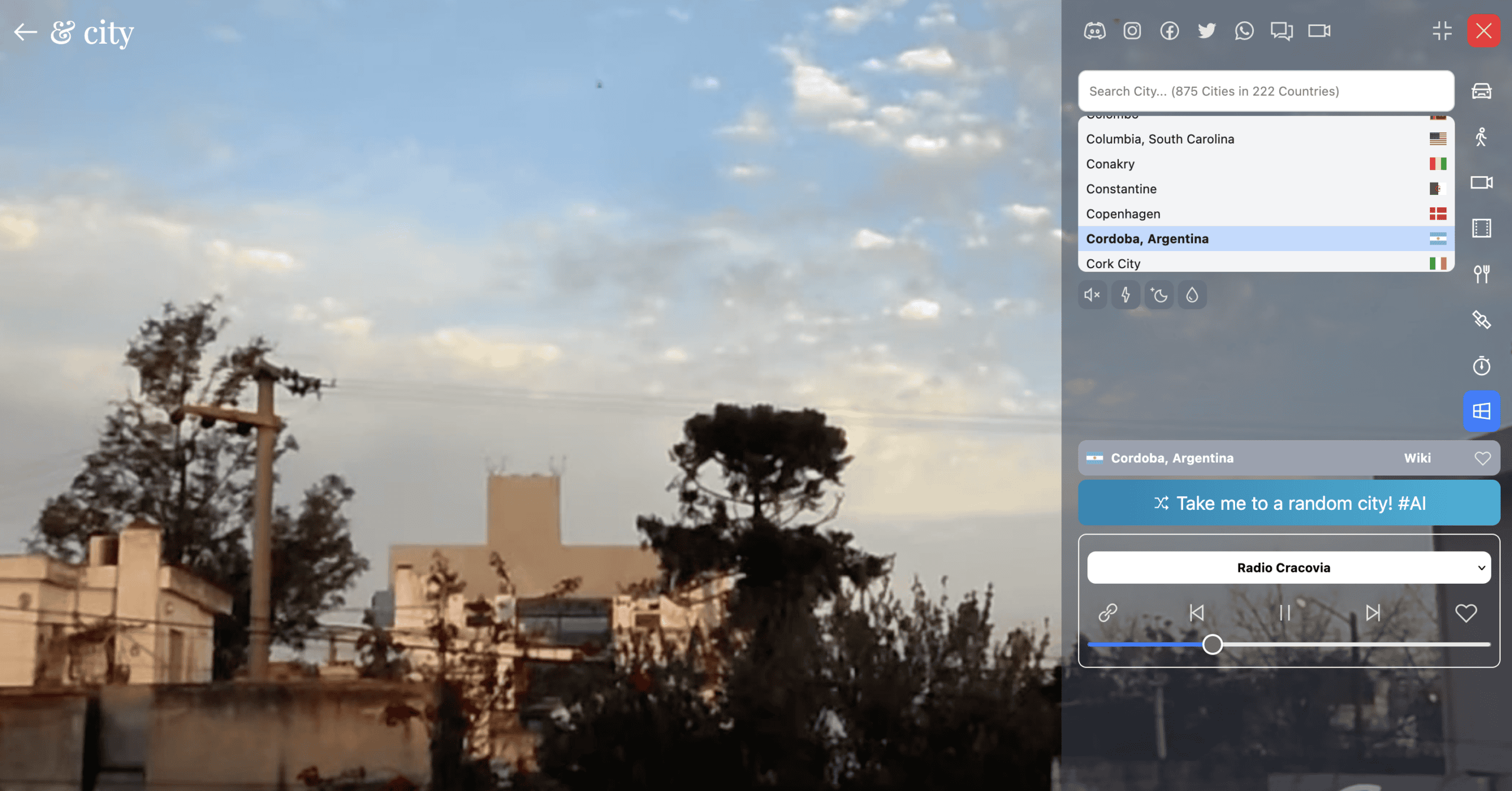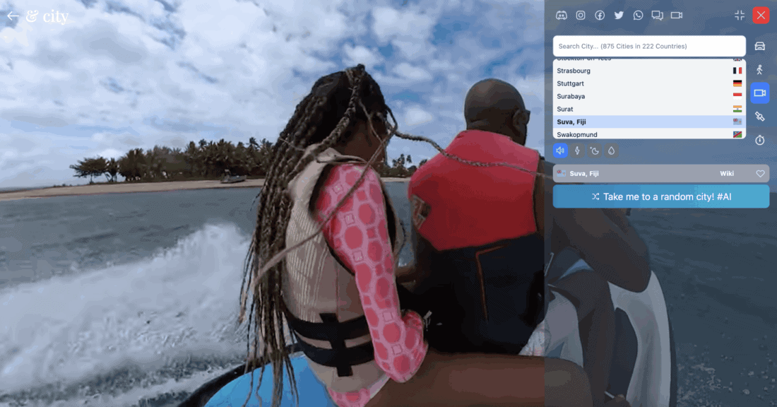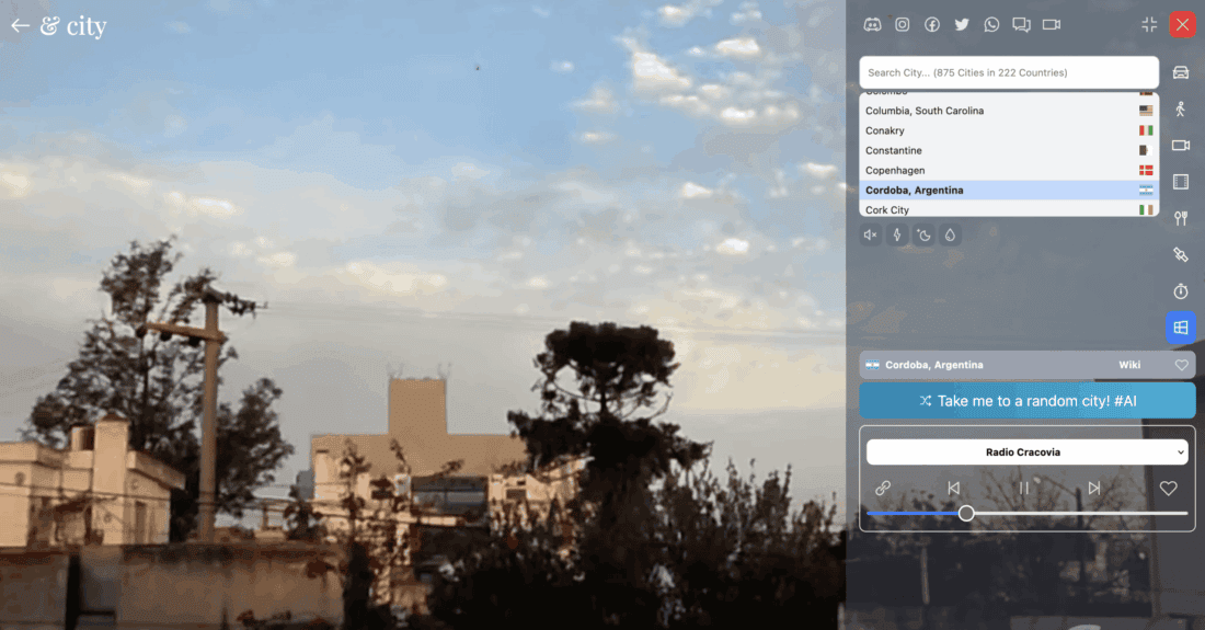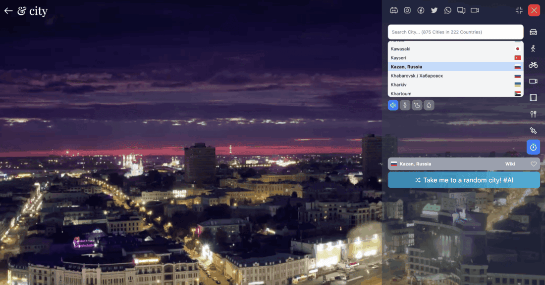 The first mode gave the website its name. You “drive” through a city of your choice by car. Unfortunately, you can’t actually steer the car. These are pre-recorded videos that are simply played back. It’s also not possible to select a specific spot in the city. Each time, it just starts from some random point.