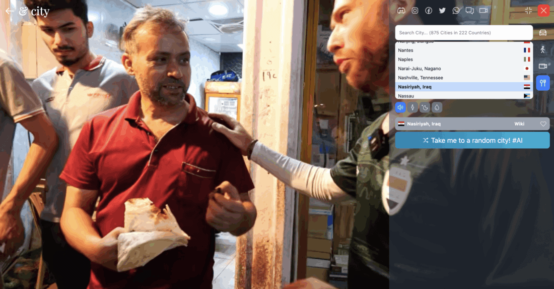 Now we come to the first mode that takes a different approach. Instead of moving through cities in first person, you watch a vlog by someone else. In other words, you follow another person as they explore the city and talk about what they’re experiencing along the way.