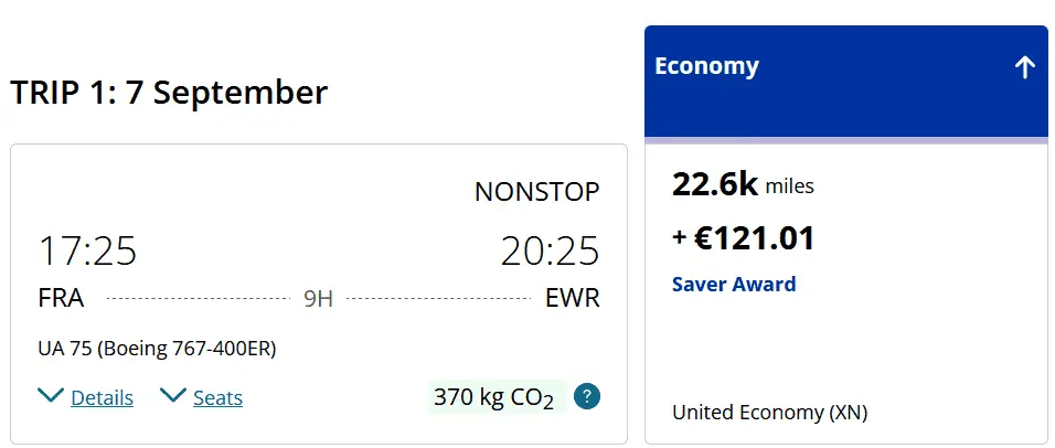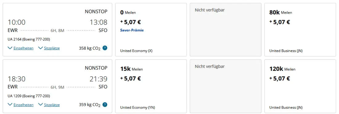 Let’s start with a relatively straightforward example, as intended by United MileagePlus. We’ll book a trip to the USA using miles. Instead of just visiting New York, we combine it with a return flight from San Francisco to Frankfurt.
