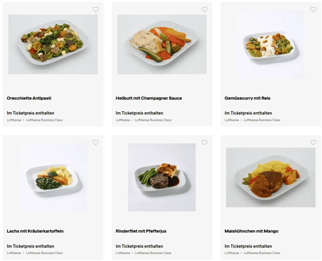 Lufthansa promises 6 meal options online, offering 3 additional options compared to the onboard menu. The options were: