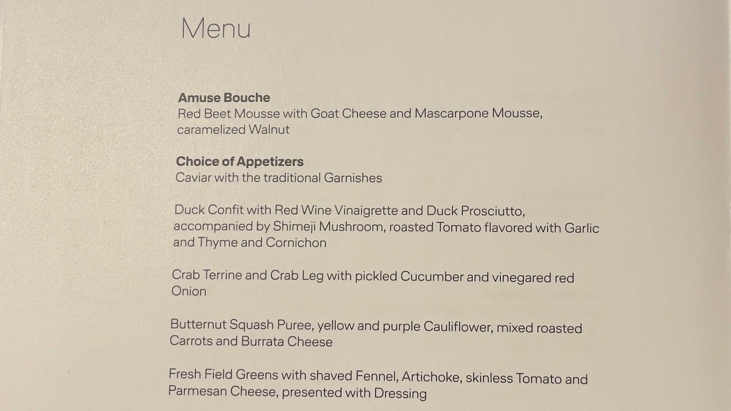 Thanks for the report but just for your info the cuvée Louise is one of the top notch champagne and above 200€….on some flight in First you can have also the Fleur de Miraval above 300€.