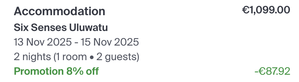 Until November 6, 2025, you can save even more on their amazing offers, as LuxuryEscapes is offering a 8% discount code: