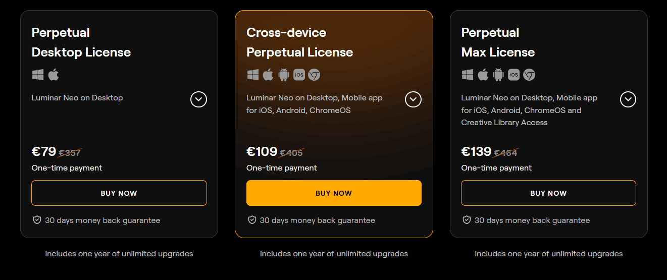 Skylum is currently running a sale that can be combined with the discount code. Until July 1, 2025, you can get a perpetual subscription for as little as €63: