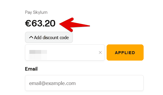 Once on the payment page, you can open the interface to enter the discount code with a single click: