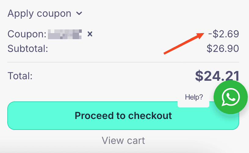 Redeeming the coupon code is fairly easy, too. After choosing your packages, you can the code in your shopping cart: