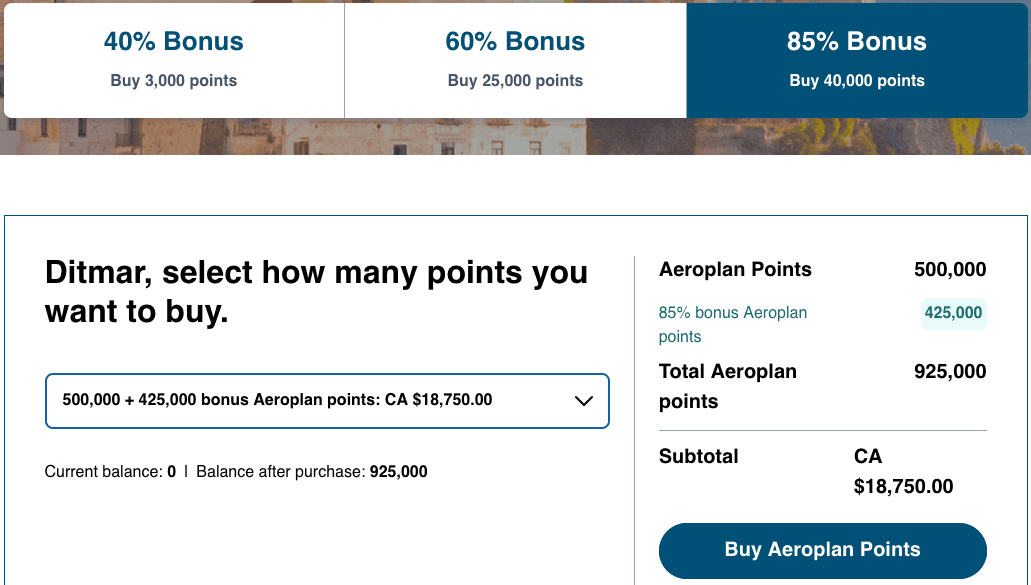 The current offer is valid until July 17, 2025 (Canadian time, so likely until 6:00 AM on the following day in Europe). The bonus kicks in when you buy at least 40,000 points. You can purchase up to 500,000 points, so with the bonus, that would be 925,000 points!