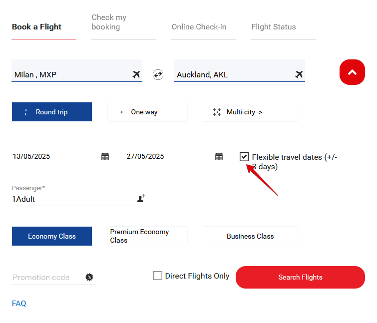 Tickets are issued in booking class L. From Milan Malpensa to Auckland, you can earn the following miles and points: