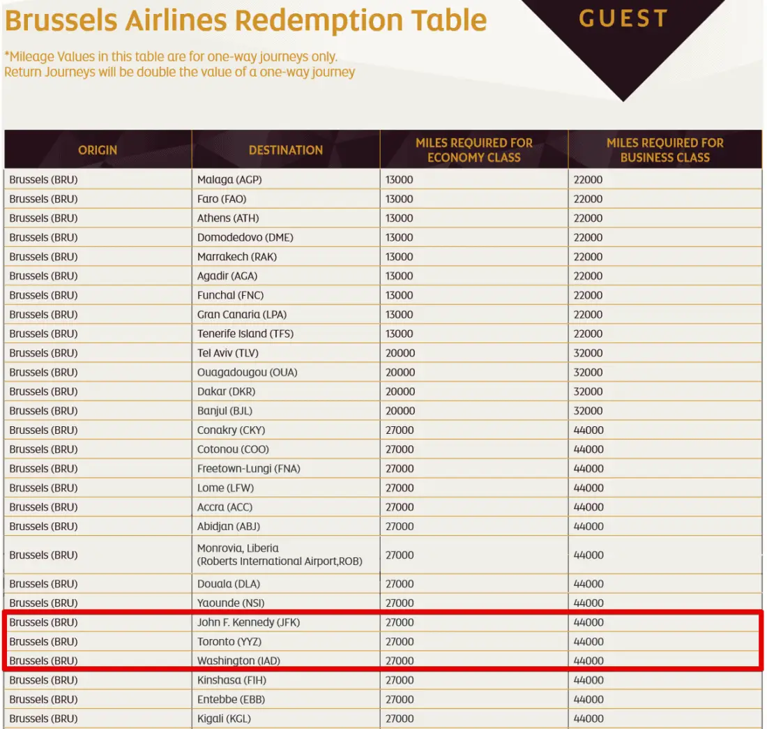 25,000 miles sounds a lot – and it is. For example, you can get a Brussels – Washington D.C. business class ticket for 44,000 miles one-way. In addition, you’d pay taxes and fees of roughly €300.