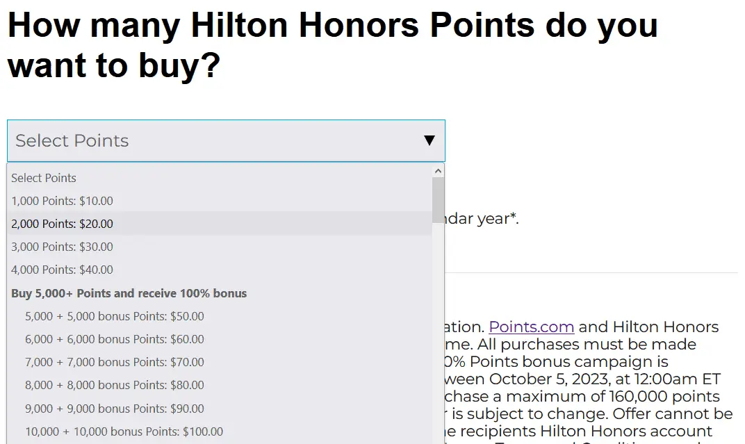 Important: Please note: the conditions for this kind of promotion are sometimes targeted. Not everybody may receive an offer of 100% bonus points. Log in to your Hilton Honors account to see how much discount you will get.