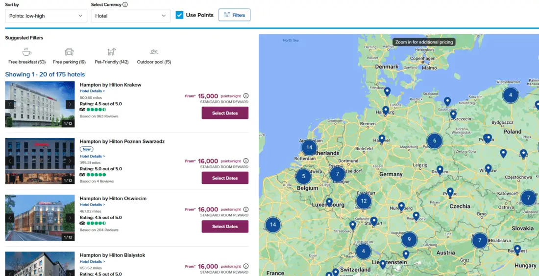 Although Hilton has promised that no hotel will cost more points than before after getting rid of the fixed hotel categories, Hilton can now change the required points for a hotel at any time and without notice. There are now almost no 5,000 point redemptions in Central Europe, but at least some hotels are now bookable for 10,000 points…
