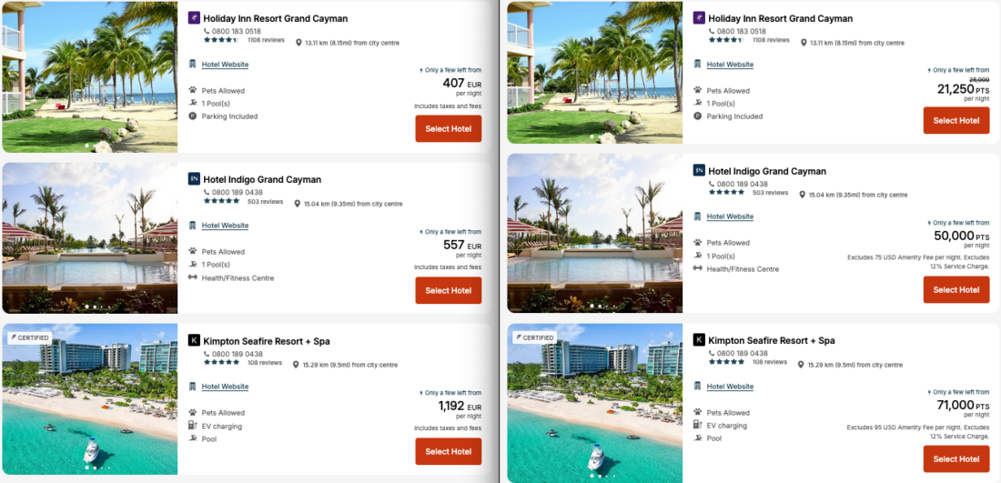 Here are some examples of hotels where you can save money by paying with points (compared to the cheapest, non-flexible rate). We focused on early 2026, as IHG is running a sale on award nights between January 4 and February 28, making them 10% cheaper than usual (and even 15% for Platinum and Diamond members):