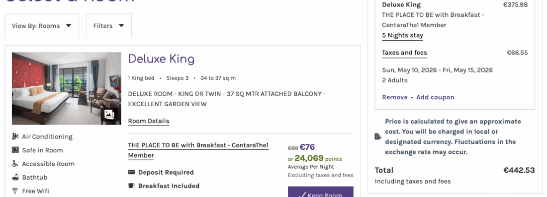 The hotel charges at least €443 for 5 nights, and that doesn’t even include the meals and cocktails