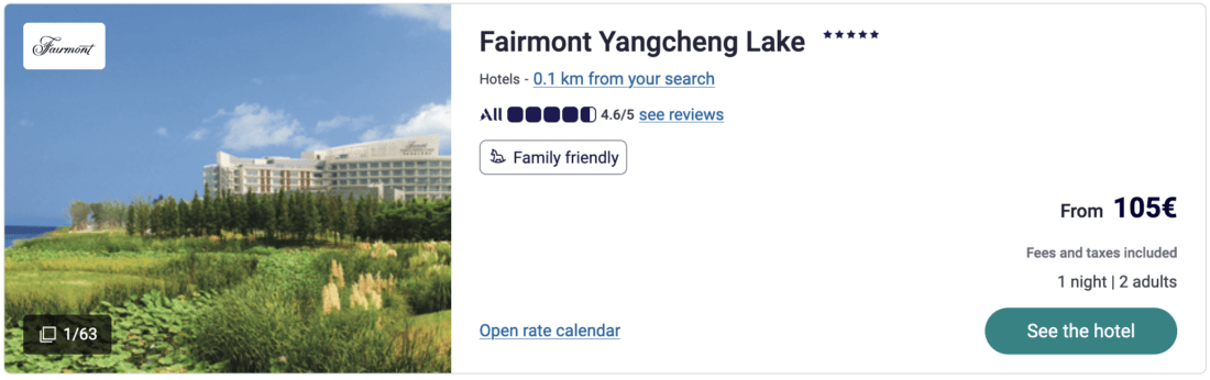 - Fairmont Yangcheng Lake, Jiangsu, China, starting at €105