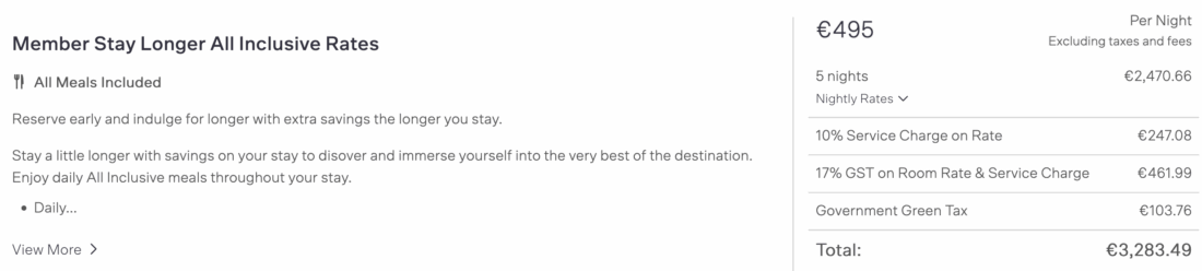 The hotel’s prices are quite constant, at around €635 per night. That means that you’re saving over 25% by booking through LuxuryEscapes.