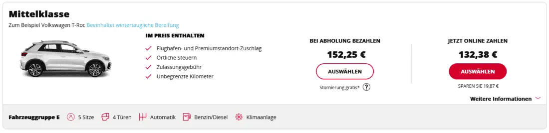Additionally, Avis.de charges another €42 for the additional driver, which is included on the SAS page. In both cases, there’s a €1,200 deductible on the insurance.