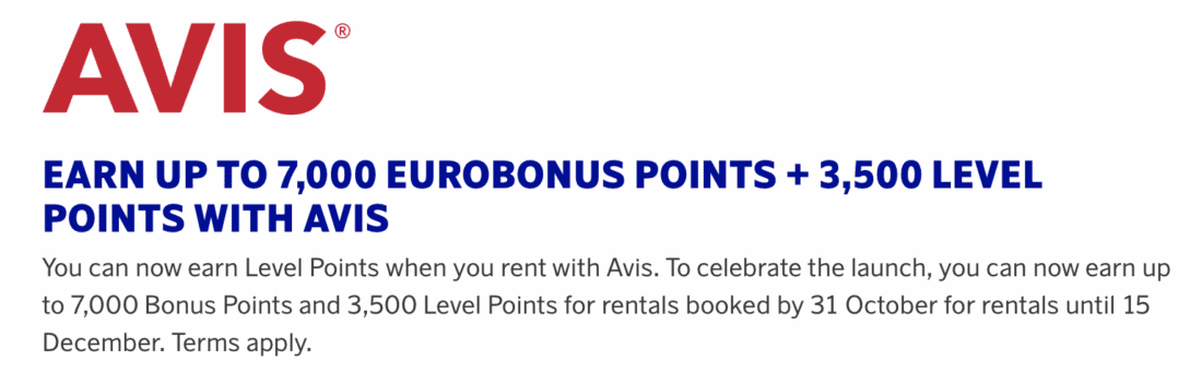 - Bookings must be made via flysas.com, sas.se, sas.dk, or sas.no (bookings directly with Avis do not qualify)