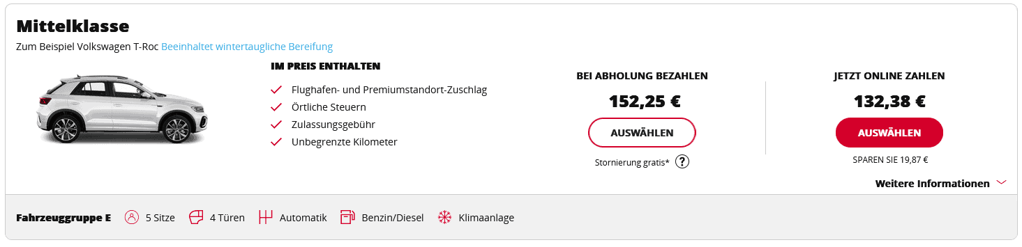- Applies only if a medium vehicle (midsize car) or larger is booked. Rentals of Mini, Economy, and Compact categories (group codes A + B) are excluded.