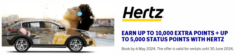 - 3,000 extra points + 1,500 status points for rentals of 2 to 5 days