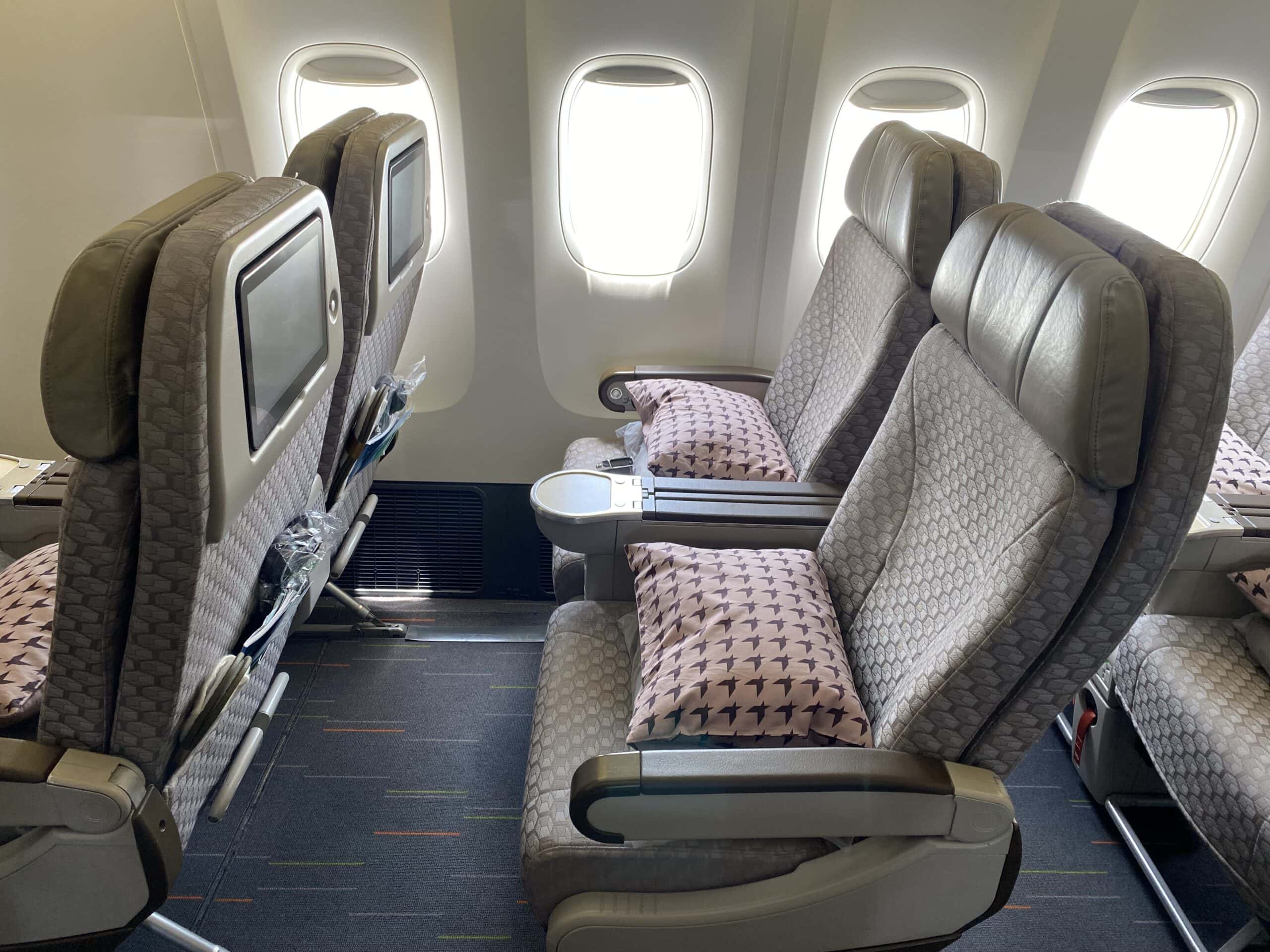 Eva Air operates a Boeing 777-300ER on these flights. Equipped with a 2-4-2 seating pattern, EVA Air features a comfortable premium economy cabin. It frequently receives excellent reviews. Below you can find a short summary of our experience with the product.