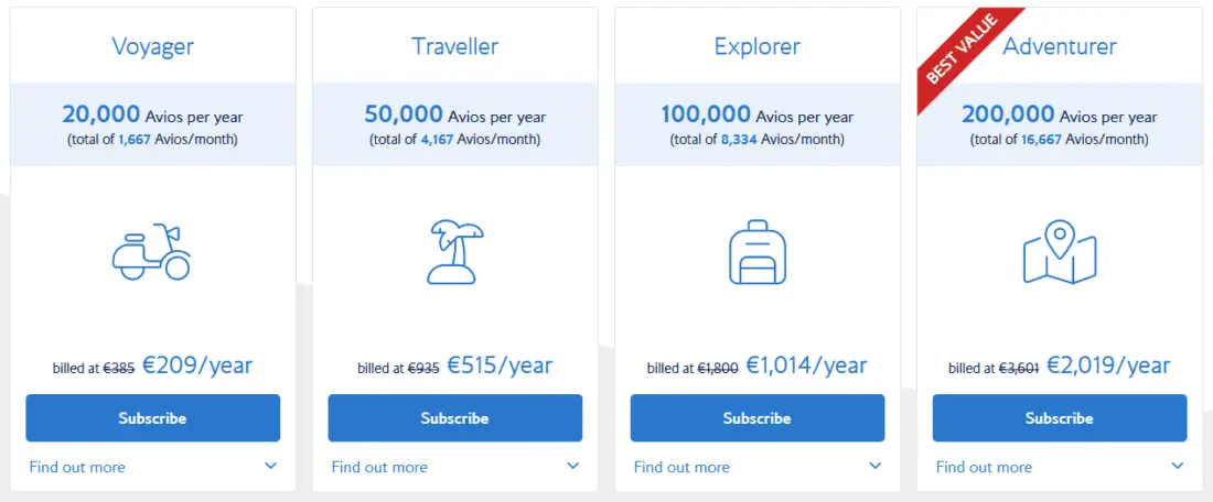 You can choose between annual and monthly subscriptions. The former is much more attractive when it comes to Avios per Euro spent: