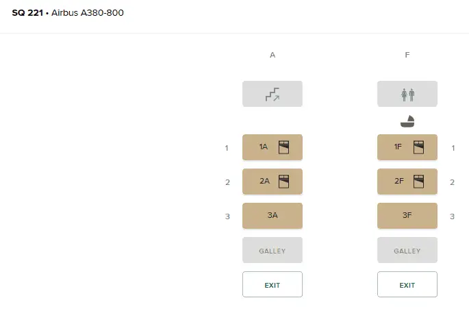 First, you’ll fly from Amsterdam to Zurich in Swiss’ business class. Then, you’ll fly to Singapore in Swiss’ first class onboard a Boeing 777. After a short stay, your connecting flight to Sydney is carried out in an Airbus A380. This A380 should already have the new suites built-in, as Singapore Airlines’ seat selection shows: