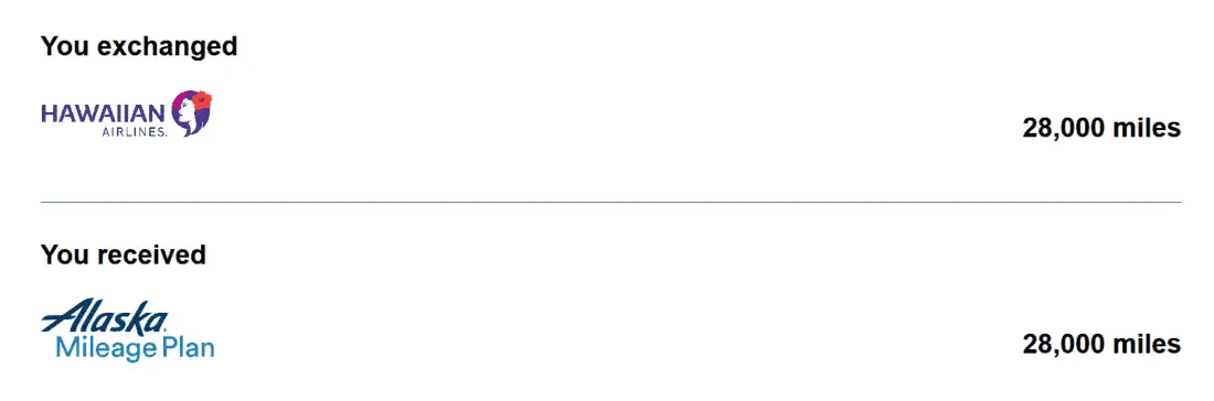 After confirming, the miles will be deducted from HawaiianMiles and credited to your Mileage Plan account. In my case, this only took a few seconds.