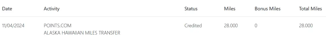 Our transfer to Alaska went smoothly, but we cannot guarantee it will work as seamlessly for you. To be safe, consider trying a small amount first (6,000 miles for US$75 (~€64)) and then purchasing more if successful.