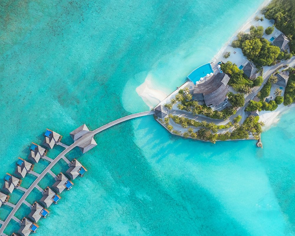 The Resort is located on a crescent-shaped island, close to Dhonakulhi reef. You can only access the island by seaplane.