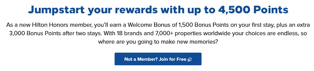 On the off chance that you’re not already a member of the Hilton Honors loyalty program, it may be worth taking a look at the offer below. You’ll get a total of 4,500 bonus points for two stays at any Hilton property. These points have a value of around €20.