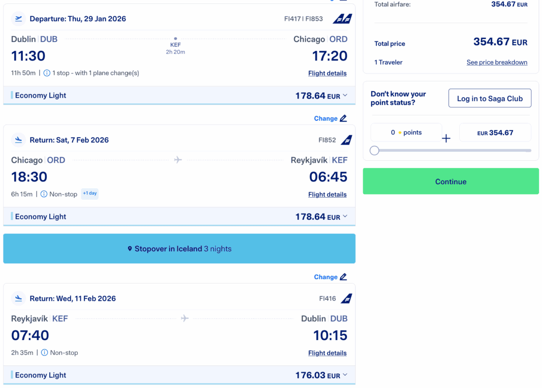 This sale will end on December 2, 2025 and is valid for trips that end before March 15, 2026. The minimum stay requirement is 3 days. You can find all available dates on Google Flights. You can then either book directly on Icelandair’s website or Trip.com. Icelandair’s website is better if you want to add a stopover, Trip.com is cheaper if you want to fly with checked luggage.