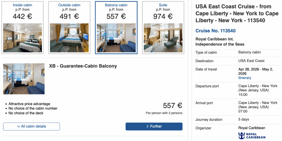 Halifax is beautiful during the warmer months of the year. If you want to take a short trip to Halifax from New York, instead of paying a small fortune for flights and a hotel, why not board Royal Caribbean‘s Independence of the Seas and enjoy a 4-night trip, with lots of food and entertainment? Prices currently start at €442 (~US$519) per person, but you could even book a nice balcony cabin for only €557 (~US$654)!
