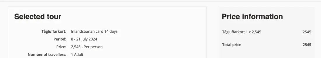 This is a rather attractive offer, as in comparison, the Interrail Pass for Sweden with a validity period of 8 days currently costs €275. This would already be more expensive than the current Inlandsbanan offer, which gives you 14 days of travel for SEK 2,545 (~€230).