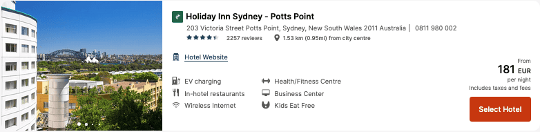 The price also absolutely holds up compared to other hotels in Sydney. Even the Holiday Inn is charging more per night, and that’s for a non-refundable rate without breakfast.