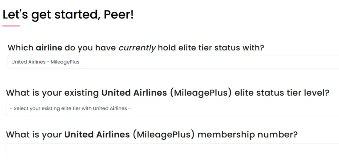 In the next step, you will be asked to provide information about your current frequent flyer status.