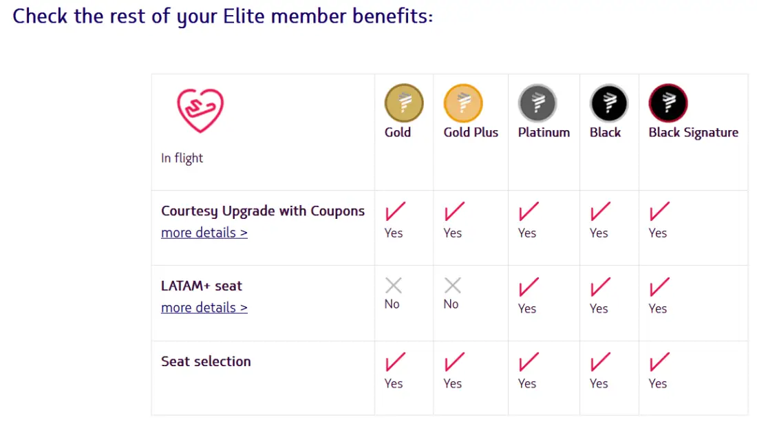 The match is really worth it starting at Platinum. We’ll summarize the most important benefits later. You can also see an overview of the benefits and conditions here on the LATAM website. You can also see the benefits at partner airlines (Delta, Iberia, etc.) here.