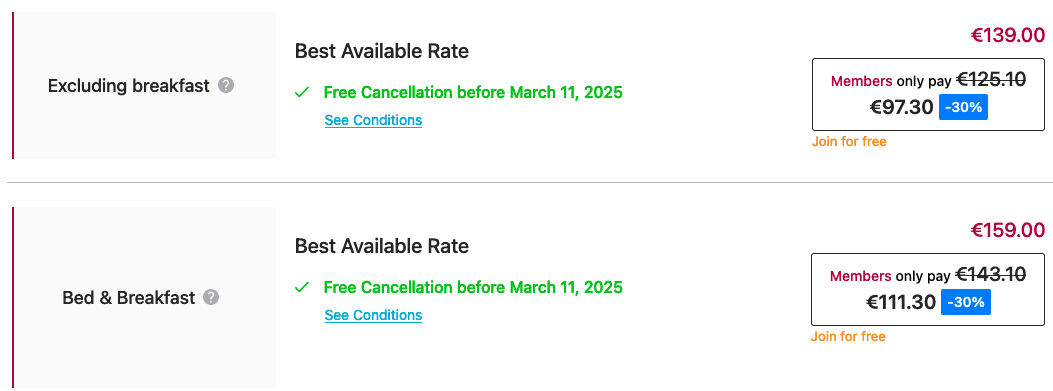 Leonardo Hotels has a Black Week offer with a 30% discount instead of the usual 10% for Leonardo AdvantageClub members (membership is free). The special thing about this offer is that the discount is applied to all rates, giving you a choice between the flexible rate with cancellation until the day of arrival or the prepaid rate, as well as the rates with and without breakfast.