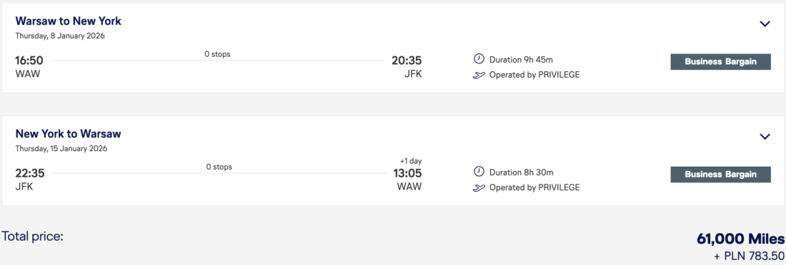 Miles&More will display award flights even if you don’t have enough miles to actually purchase them. If you use the search form at the bottom of the deal, you will be redirected to Miles&More’s site, where the available flights will be displayed. However, the availability is very low, especially for these LOT bargain flights, so it’s very likely that there simply won’t be any available flights any more.