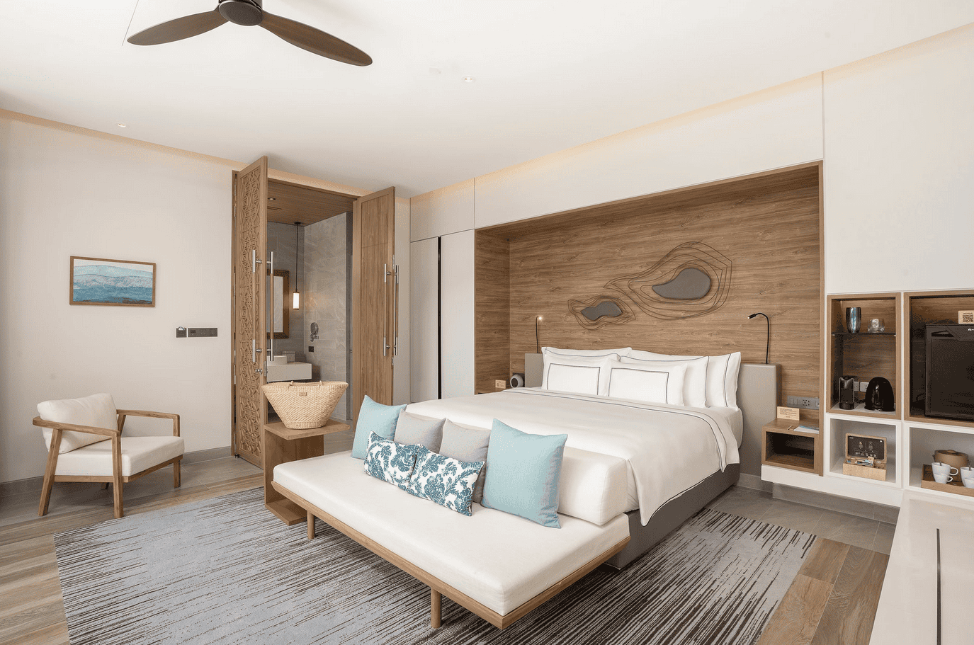 The Meliá Phuket Mai Khao is a five-star rated hotel, located in the north of the island. While you can easily access the beach from the hotel premises, you cannot go to a near town or village by foot. Taking a Grab or taxi is necessary to get around. On a positive note, the airport is merely a twenty-minute drive away. In addition to your suite and a beautiful swimming pool, the hotel also features three restaurants and a pool bar. The lobby of the hotel, set around a small pond, also seems quite spectacular.