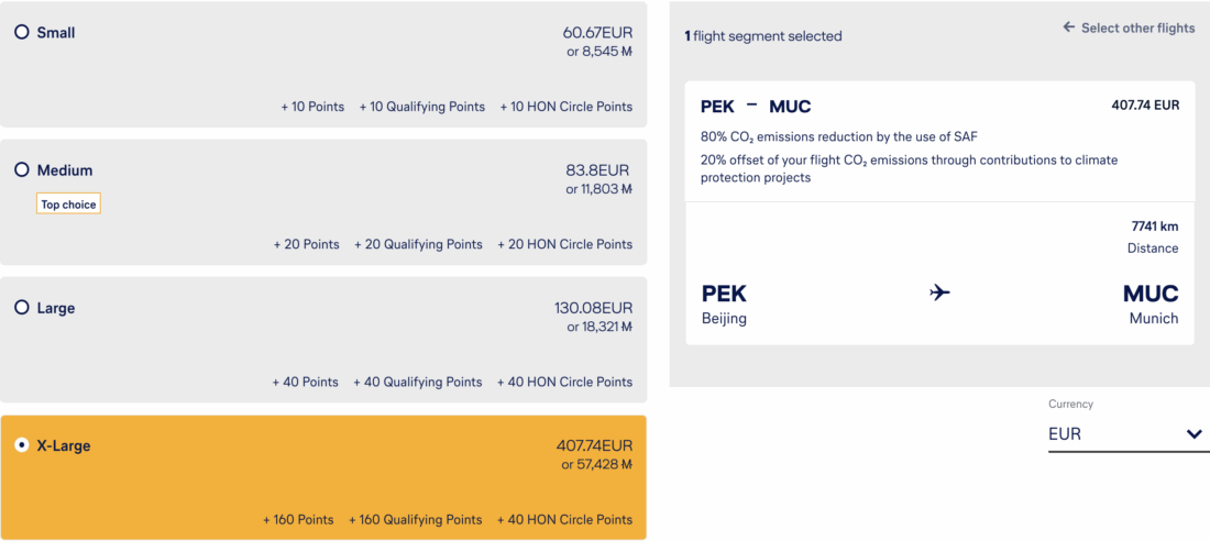 This option can be very appealing if you’re missing a few points toward FTL, Senator, or even HON Circle status at the end of the year. Depending on the flight route, prices start at roughly €1 per (Qualifying) Point. That’s cheaper than almost any status run—and far more eco-friendly and time-saving than a mileage run to the Middle East.