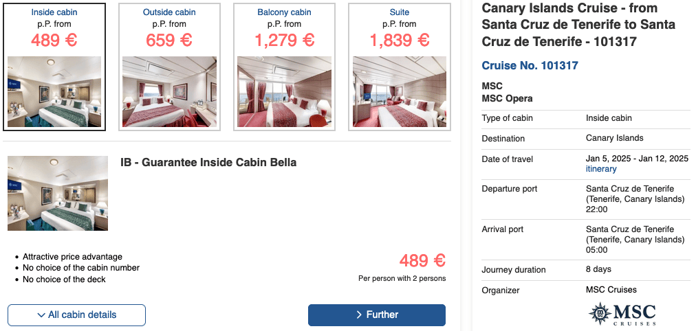 In early 2025, you can spend a week onboard the MSC Opera for only €489 per person, exploring the Canary Islands and Madeira. During that week, all meals, basic drinks, and tips are included.