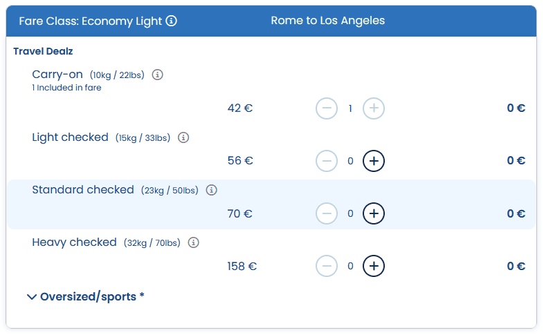 In true ULCC fashion, the prices can get pretty confusing upon adding extras. It is possible that it would have been cheaper to select the more expensive fare. Here are some of the add-on prices and fares: