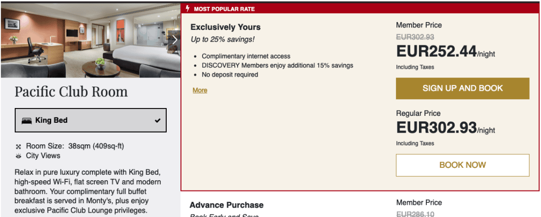 If you prefer a direct comparison for the same room type, Pan Pacific charges €158 for the same Deluxe room with breakfast. This means that LuxuryEscapes is basically charging €3 less and giving you lounge access for free on top.
