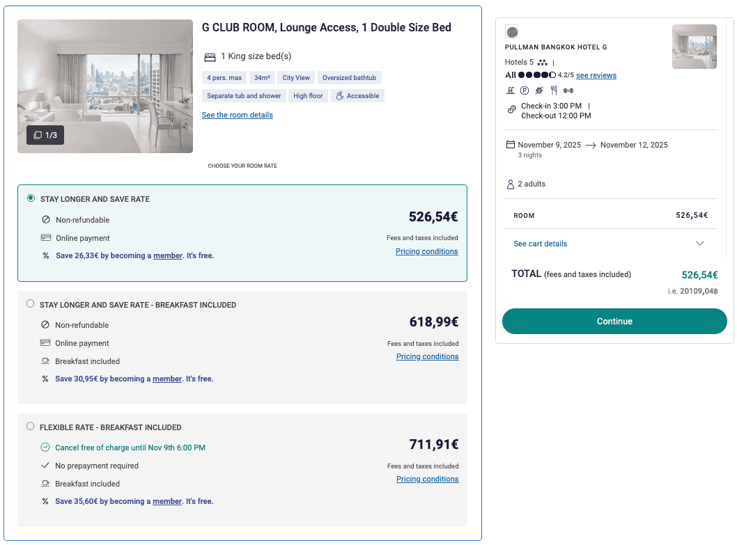 The price of €87/night is hard to beat for this hotel. Even during the relatively cheap August, you’d pay at least €140 per night for a room with lounge access. But you can save even more with this deal, e.g. in November, when the room can cost up to €175 per night on Accor’s website.