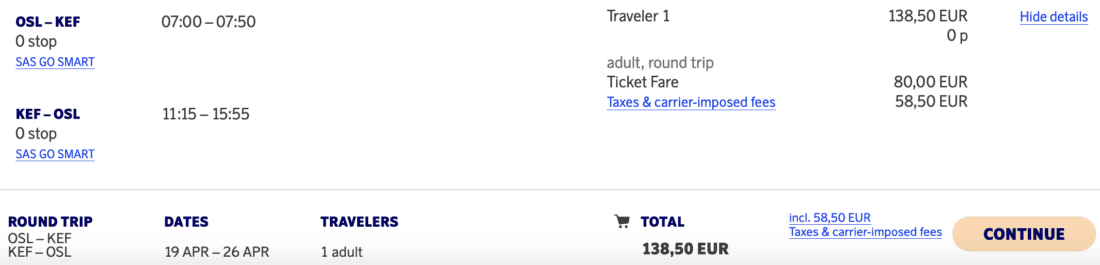 SAS Scandinavian Airlines is offering a flight deal from Norway & Copenhagen to Iceland starting at just €137, including a carry-on and checked luggage. From most cities that require a connecting flight, the availability is limited to February and March. The non-stop flights, however, are available throughout the year, even during summer.