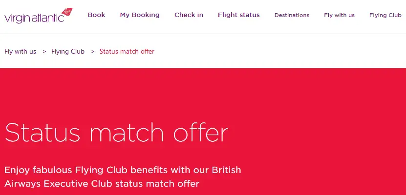 Virgin Atlantic is currently offering a simple status match to its own frequent flyer program, the Flying Club. You can be matched up to the Gold status, which will get you precious benefits on flights with Virgin and its partners (e.g. Delta, KLM & Singapore Airlines).