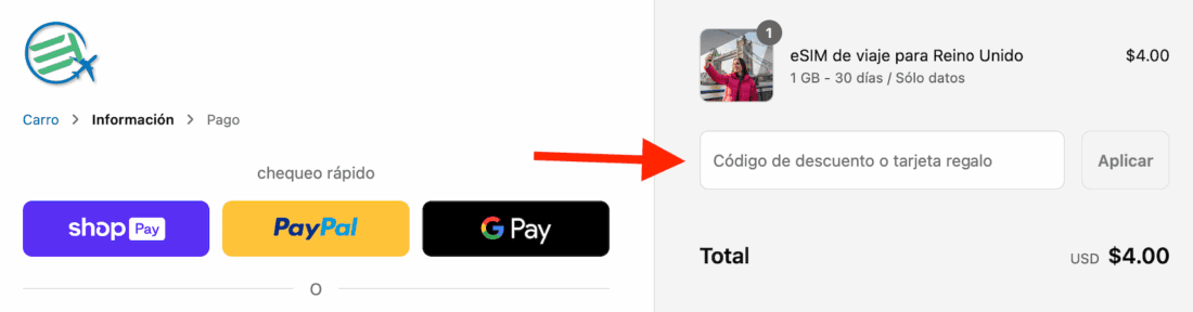 Si el descuento es válido, se deducirá de su total de inmediato.