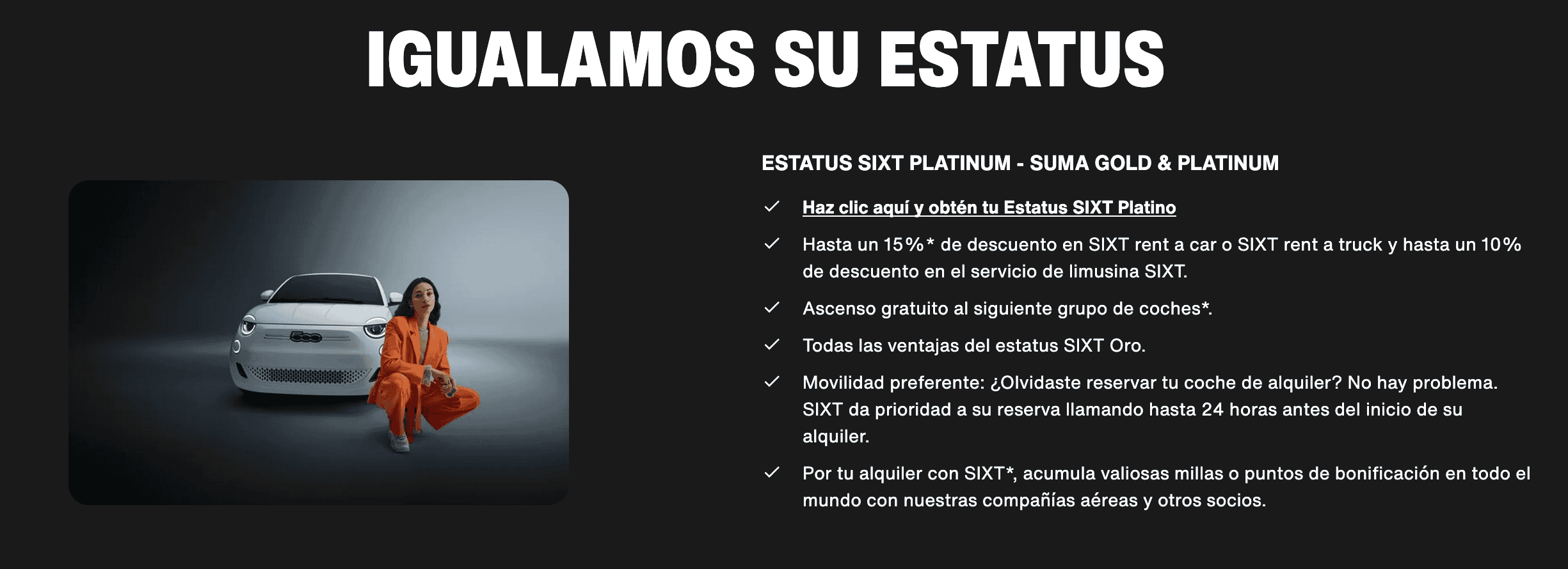 Debe ser redirigido directamente desde el enlace del programa donde tenga estatus. Hemos incluido los enlaces más arriba, pero en caso de necesitarlos, aquí se encuentra la página central de todos los socios de Sixt: