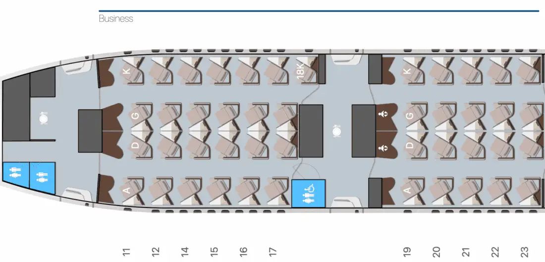 Seat map of th Boeing 777 Business Class with Aria Suites (© AeroLopa)