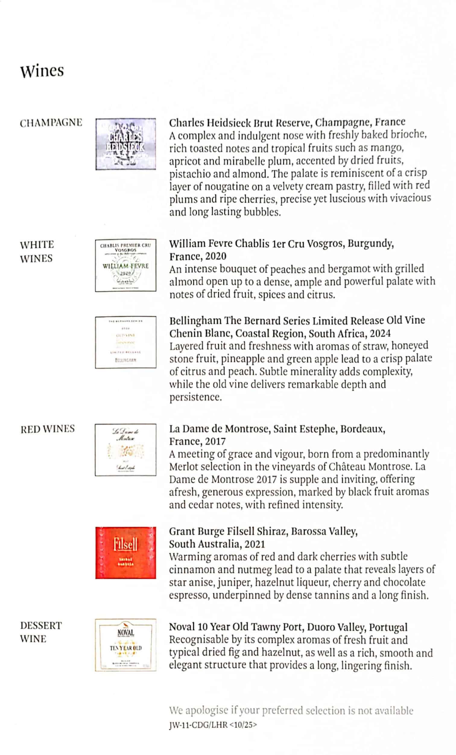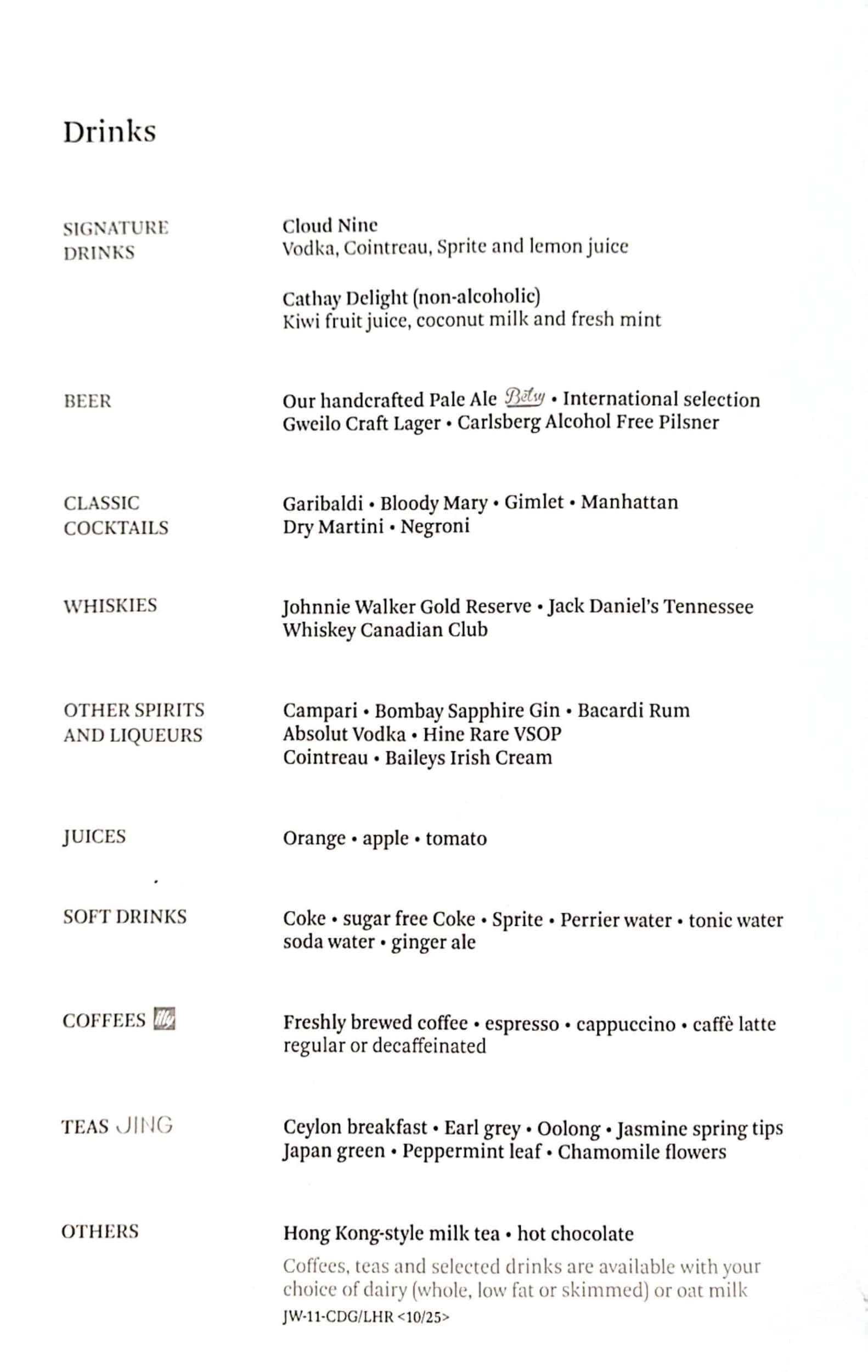 Menu on HKG – LHR
